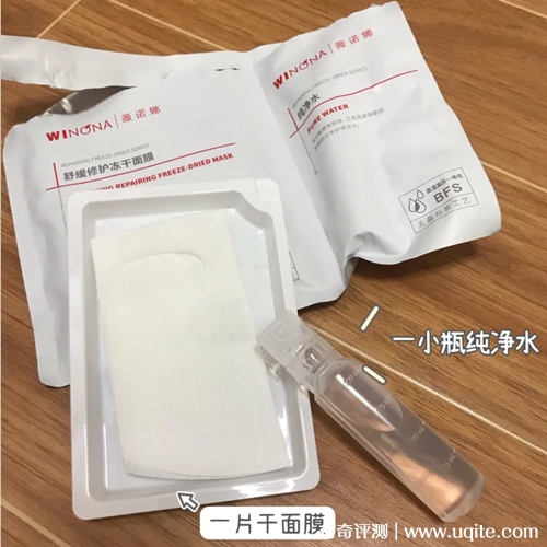 面膜到手后就還挺不錯(cuò)的,而且還額外贈(zèng)送了一些產(chǎn)品。使用時(shí),這款薇諾娜凍干面膜一共有兩樣產(chǎn)品,分別為凍干了的面膜片和無菌純凈水,上臉貼敷之前,要先將無菌純凈水滴入干面膜片中。