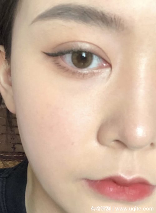 它的遮瑕效果還是挺強的,我的黑眼圈還挺重的,一般粉底液都遮不住,這款粉底液可以把我的黑眼圈遮個七七八八,鼻翼泛紅和長痘痘的地方也都全遮住了,完全不需要再用遮瑕膏。