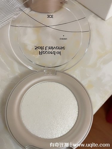 3CE高光的粉質(zhì)很細(xì)膩,不是很夸張的大顆粒閃粉,我是毛孔還比較粗大的,用著很服帖,不會顯毛孔,也不假白,它整體就是白色的細(xì)閃,沒啥偏光,還挺日常的。用來混個定妝粉用,在陽光和燈光下很閃,也不會顯得滿臉油光的感覺 。