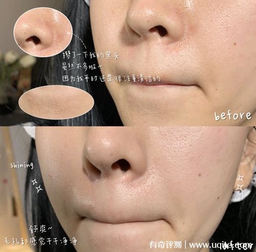 這款杏仁酸精華我用了幾天之后,感覺額頭上的痘痘表面軟了不少,還癟了一些。目前用了兩個(gè)多星期,痘痘更小而且更少了。另外,下巴上的粉刺也慢慢消了不少,鼻子上黑頭也沒之前長(zhǎng)得那么快了,反正視覺上皮膚整體看著干凈清爽好多。