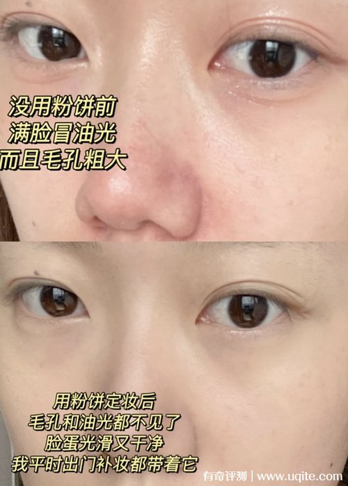 我本身是個混油皮,剛用完粉底液油光挺明顯的,用了散粉后瞬間油光也消失了,而且毛孔更加隱形(有種天生好皮的感覺),而且它用完之后稍稍提亮了點膚色,不過妝感通透,看著也不假面厚重。