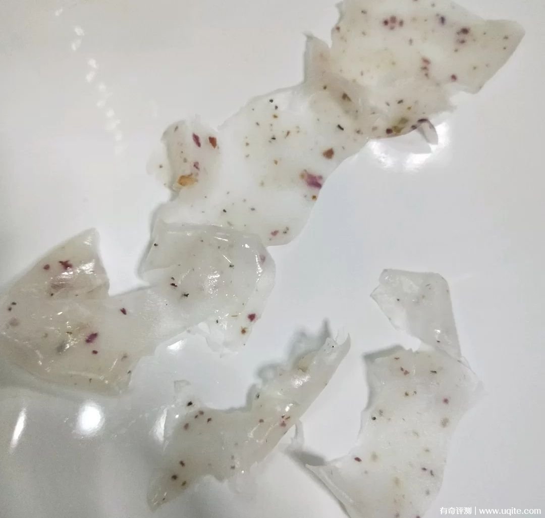 宿系之源玫瑰水晶膜是白色粉末,夾雜著些玫瑰花末末,味道聞著很舒服,用的時(shí)候和他們家純露攪拌就行(純凈水也行)。加純露個(gè)技術(shù)活,水放少了太厚重,不好撕下來(lái),水太多了又容易用不完。攪拌過(guò)程還是挺解壓的,攪拌好之后,質(zhì)地很像藕粉(吃貨視角)。