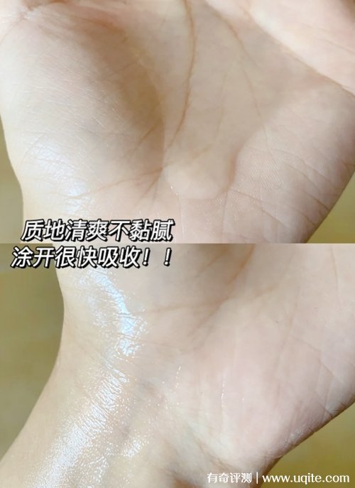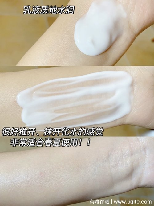 AKF紫蘇乳液的質(zhì)地不厚重黏膩,算輕薄的類型,涂在臉上一抹就化水了,它的吸收速度也蠻快的,用完之后皮膚還蠻水潤(rùn),有彈性的。它吸收完之后臉上看不見什么油光,膚感很好,摸著軟軟的。