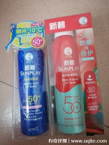 其實紅瓶的這款和藍瓶的這款防曬霜,在SPF和PA值上面是一樣的,但是紅瓶的這款防水、防汗效果會更高,像在去海邊或者是戶外運動,就比較適合紅瓶的這款。而且這款紅瓶曼秀雷敦噴霧質(zhì)地也很輕薄,上身一點負擔(dān)感都沒有。