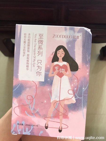 我是個(gè)干皮,平時(shí)面膜敷得還挺頻繁的,因?yàn)閷?shí)在是有些小貴,就想說買點(diǎn)平價(jià)點(diǎn)的,妝度面膜我是在網(wǎng)上看到介紹說成分挺好,就看了看,評(píng)價(jià)什么的也不錯(cuò),就買了一盒。