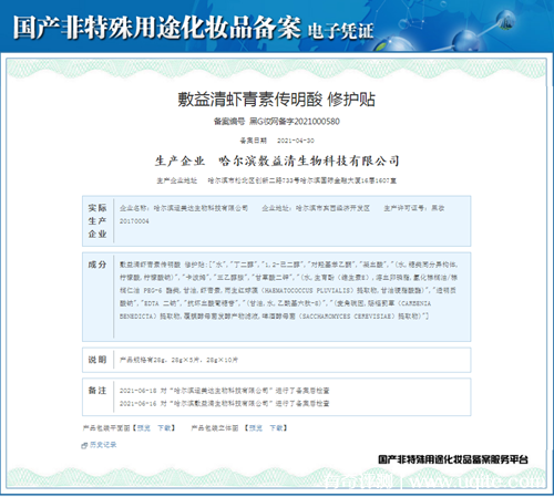 敷益清是哈爾濱敷益清生物科技有限公司旗下品牌,主要針對解決問題皮膚及微整后的皮膚修復(fù)護(hù)理情況,品牌產(chǎn)品致力于醫(yī)學(xué)美容與護(hù)膚產(chǎn)品推廣與銷售,旗下所產(chǎn)品均已經(jīng)過國家食品藥品監(jiān)督管理總局審核批準(zhǔn),是合格的正規(guī)品牌。其中敷益清蝦青素傳明酸修護(hù)貼面膜,就是他們家銷量很高的產(chǎn)品之一,下面就來看看這款敷益清面膜怎么樣。