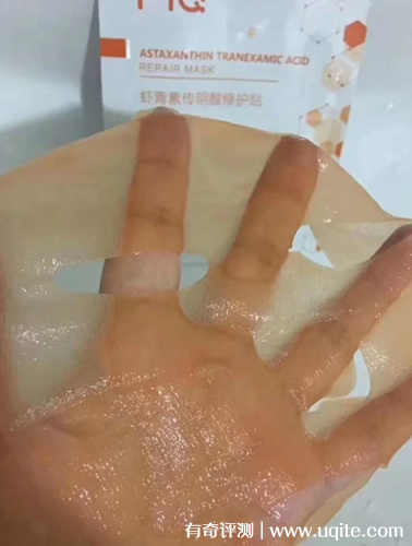這款敷益清面膜一盒是五片裝的,拆開以后里面的精華液和膜布都是橙黃色的,而且精華液很多,上手流動性很強(qiáng),聞著沒有刺鼻的味道,就還挺不錯的。