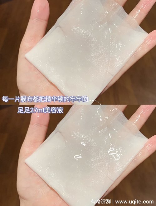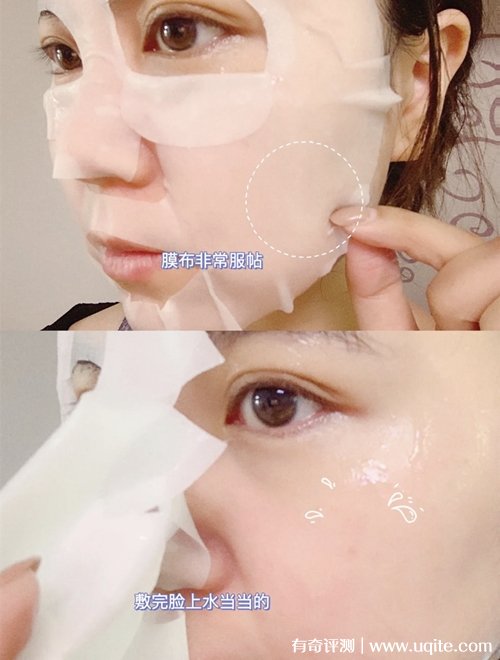 凡爾賽面膜的膜布是屬于比較厚的類型,但它上臉服帖透氣,敷著不會覺得悶,里面精華的量還挺多的,質地不粘膩,好吸收。使用過程中能清楚感覺膜布上水分越來越少,不過最后也還能擠出來些,可以用在腿上。