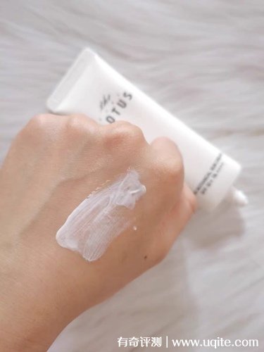 Lotus蓮花防曬霜的質(zhì)地是乳霜的質(zhì)地,抹開不厚重,不黏膩,有一定油感,它成膜速度可以,成膜后油感會減輕一些。它用完之后會有點增白潤色的效果,但用著不假白不浮粉,臉上的瑕疵都被淺淺的遮住了一層,而且不管多厚,都不搓泥。
