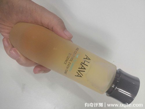 這款A(yù)HAVA護(hù)膚品一共有兩樣產(chǎn)品,分別是緊致乳液和精華水。使用時(shí),這款A(yù)HAVA護(hù)膚品中的精華水,是透明的黃色質(zhì)地,上手使用流動(dòng)性就挺強(qiáng)的。