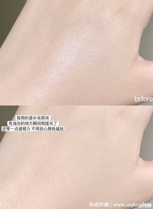 另外,珂曼粉餅的控油效果不錯,我一般涂完之后大半天下來也不用補妝,沒有什么出油的痕跡,就算后面出油了,直接按壓一下,油光也能立馬消失,持妝效果來說也可以,我用完一整天,臉上也沒有出現(xiàn)浮粉或者是暗沉的情況,膚色依舊很亮白。