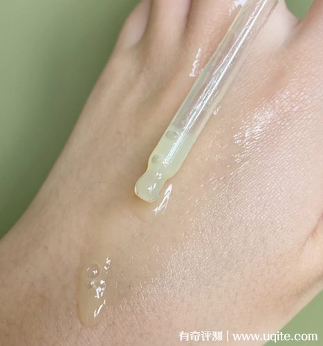 Evologie的這款精華液包裝還挺好看的,使用時,它是滴管頭的提取方式,所以衛(wèi)生性和方便性就更高。精華液的質(zhì)地是淡黃色的流動性液體,上手使用就還挺清爽的,吸收效果也很快。
