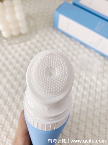 刷頭是硅膠的質(zhì)地,刷齒很細(xì)膩,接觸肌膚以后挺柔軟的。洗面奶上臉使用泡沫很豐富,而且清潔效果很好,沒有刺痛敏感的反應(yīng),洗完以后也很好沖洗,沒有假滑干澀的情況。