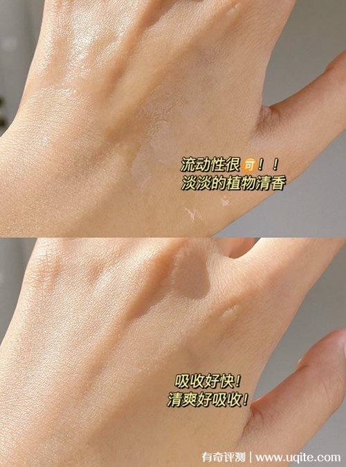 蘭芝精華水的質(zhì)地流動(dòng)性很強(qiáng),有一定稠感,但上臉輕薄不油膩,吸收蠻快的,抹開(kāi)之后拍一拍就差不多了,用完皮膚有水潤(rùn)感,補(bǔ)水效果可以。