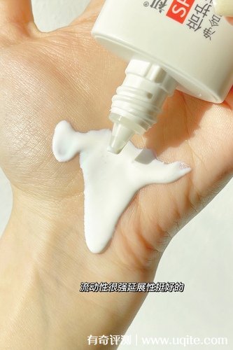 初現(xiàn)防曬霜的質(zhì)地流動性很強,抹開輕薄不粘膩,基本上沒什么油感,用完之后膚感很好,成膜速度來說也挺快的,出門前一會抹上就行。成膜后也不油膩,不搓泥,對我這個混油皮來說挺好的。