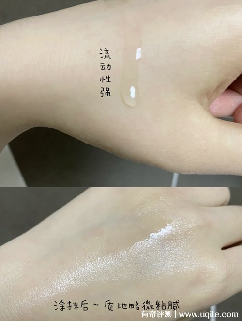 夸迪氨基丁酸多肽玻尿酸次拋原液的質地有點粘稠,流動性很強,但它上臉并不黏膩,蠻滋潤的,沒有厚重感,它的吸收速度也蠻快的,完全吸收后皮膚有種由內而外透出的水潤感,摸著很舒服,而且后續(xù)也不會搓泥。