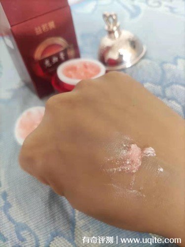 上手使用時(shí),這些白色的顆粒會(huì)隨著涂抹而溶解,所以完全不用擔(dān)心使用情況,這款益若翼龍血貴婦膏涂抹均勻以后,有很不錯(cuò)的美白效果,但是一點(diǎn)也不假,就挺自然的。