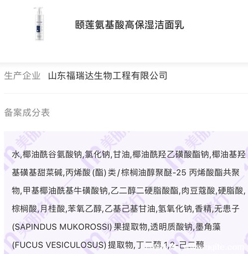 頤蓮洗面奶打開之后味道挺淡的,聞著不刺激,我也在網(wǎng)上查了一下它的成分,還蠻安全的,沒有添加什么香精和酒精,我一個(gè)敏感肌用完之后臉上也沒有泛紅緊繃。