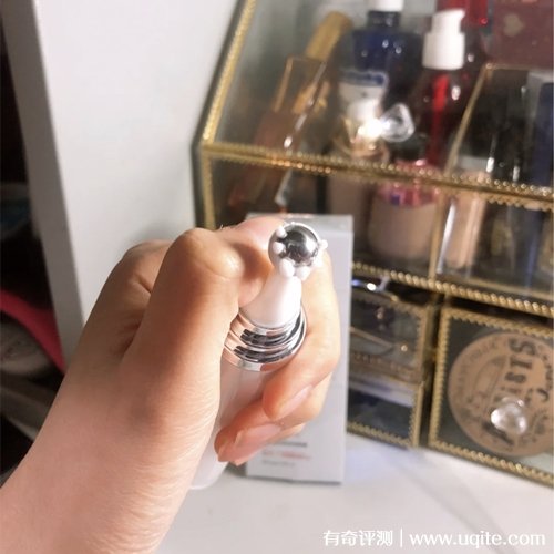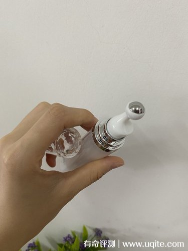 ucm眼霜的質(zhì)地還蠻水潤的,延展性好,一抹就化開了,完全不黏膩,吸收也快,抹開按摩一下就差不多了,它用完之后眼周皮膚的水潤度明顯上升。它那個(gè)金屬按摩頭用著還蠻舒服的,用完之后可以明顯的感受到眼周肌膚往上提拉了一些,肉摸著也比較有彈性。像早上起來用用,還可以消水腫。