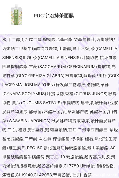 pdc碧迪皙抹茶面膜到手之后包裝還蠻不錯的,打開之后它的味道聞著也不錯,淡淡的抹茶清香,并不刺鼻,我也在網(wǎng)上查了一下它的成分,還蠻溫和安全的,沒有添加什么刺激性的成分。