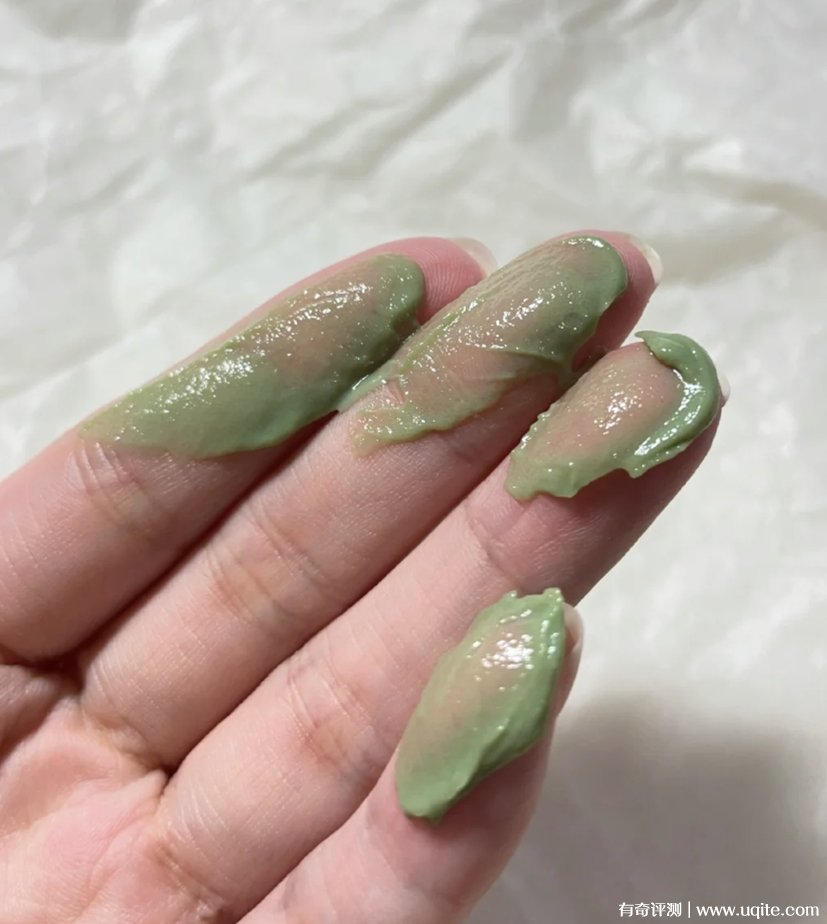 pdc碧迪皙抹茶面膜的質(zhì)地很細(xì)膩,上臉之后延展性很好,不厚重,我一般會涂到基本看不出來皮膚的程度,涂的很厚也不會覺得悶。