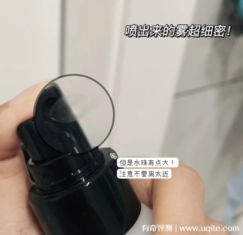 muf玫珂菲定妝噴霧一瓶不算很大,它的噴頭還挺好用的,輕輕一按就出來了,噴出來的水霧很細膩(要稍微拿遠一點噴,不要直接懟著臉噴),不會在臉上形成大的水珠,噴在臉上也不會弄花底妝(也可以當做妝前保濕噴霧用)。