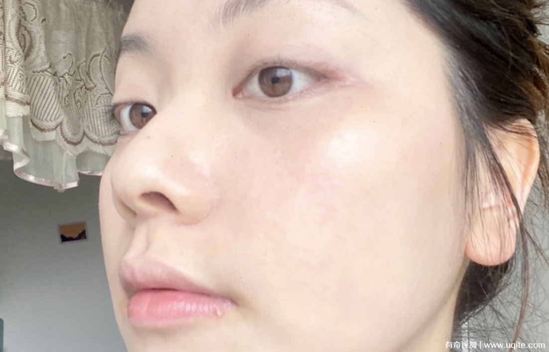 后妝前乳的質地還挺水潤的,好推開,不厚重,上臉服帖不卡,后續(xù)上妝也沒問題。顏色來說增白明顯,但通透,所以不覺得假,涂上毛孔和小瑕疵都淡化隱形些了,均勻膚色效果很好。