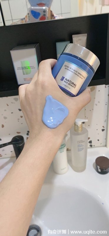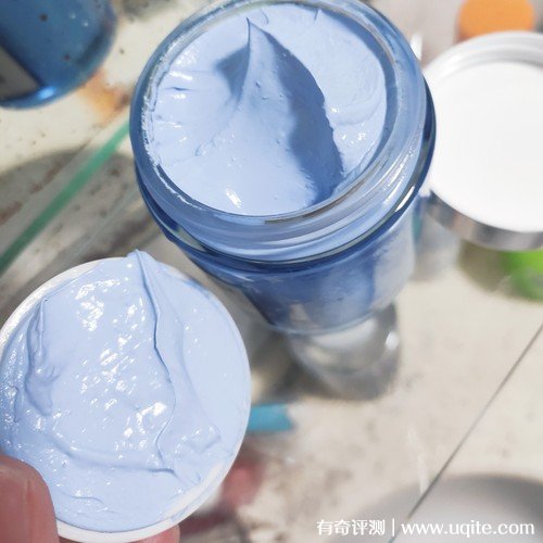 NSB海蘊(yùn)清潔面膜打開之后是藍(lán)色的膏狀,質(zhì)地很順滑,里面還有一點(diǎn)磨砂顆粒,它上臉還蠻水潤的,抹在臉上有點(diǎn)涼涼的,很舒服,不覺得厚重和悶。我一般會涂得厚一點(diǎn),基本看不出膚色的程度。它有一點(diǎn)很好,在使用的時候它不會變干,不會吸收皮膚里面的水分。