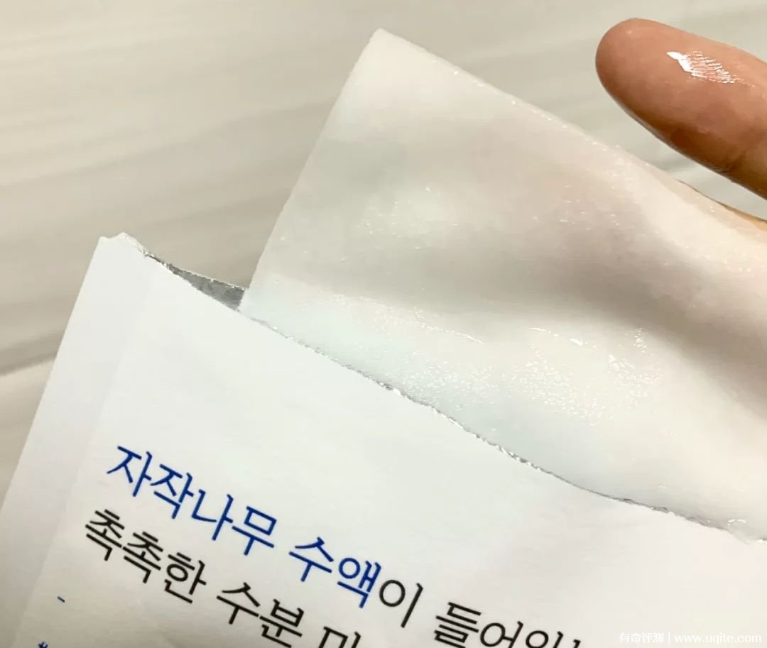 獨(dú)島面膜味道不是很好聞,但也不難聞吧,不是香的,可能就是白樺樹(shù)的味吧。膜布是屬于偏厚點(diǎn)的,但不悶,透氣性可以,服帖度也不錯(cuò)。精華含量很多,拿出膜布后還有多的,可以用在身體其他部位。