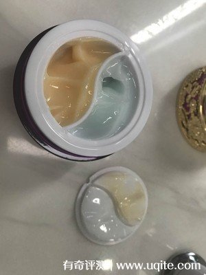伊夏眼霜打開以后,它里面是一個早晚眼霜的分層設計,黃色的這邊是日間眼霜,藍色的這邊是夜間眼霜。兩款眼霜的質(zhì)地都挺滋潤的,上臉使用也不油膩,吸收效果就挺不錯。