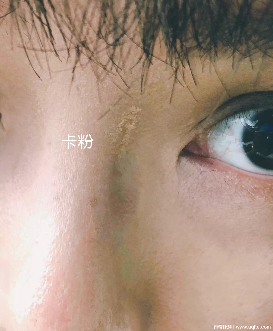 因為我直接上妝大家也看不出來區(qū)別,就給大家看一下補妝的效果,在浮粉的地方抹一點它,再揉一揉,粉底就又均勻了,上了粉餅后,看起來超級細(xì)膩。
