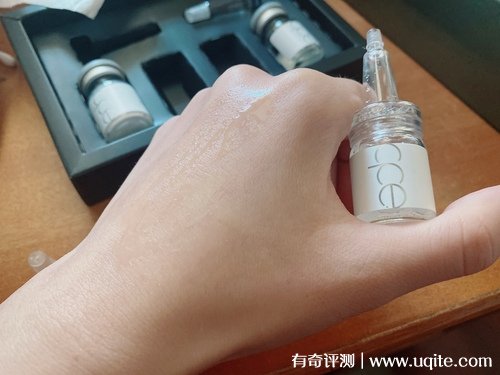 充分溶解以后的CPE凍干粉是透明的精華液質(zhì)地,聞起來沒有任何刺鼻性異味,而且上手使用流動性還挺強的。上臉涂抹時,這款CPE凍干粉的保濕補水效果很高,抹完以后會有明顯的光澤感。