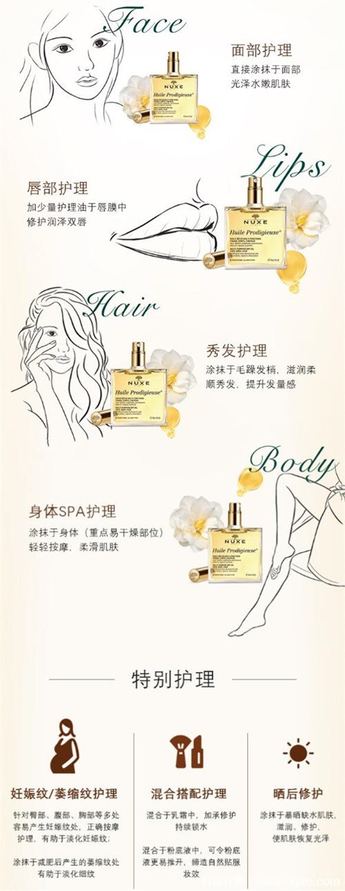 nuxe(歐樹(shù))是一個(gè)來(lái)自法國(guó)巴黎的植物護(hù)膚品牌,已經(jīng)有三十多年歷史了,憑借著天然安全的特點(diǎn)深受消費(fèi)者喜愛(ài),其中,小金油(即多效滋養(yǎng)干爽護(hù)理油)就是一款熱門產(chǎn)品,不含任何風(fēng)險(xiǎn)成分和孕婦慎用成分,敏感肌與孕婦可以用。下面就一起來(lái)具體看看nuxe歐樹(shù)小金油效果怎么樣。