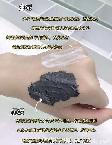 這款果殼分區(qū)面膜是一個(gè)白泥膜家黑泥膜的搭配設(shè)計(jì),其中黑泥膜主打清潔凈膚,白泥膜主打修護(hù)、強(qiáng)韌補(bǔ)水,所以基本上是一罐多用的泥膜設(shè)計(jì),看著就還蠻不錯(cuò)的。