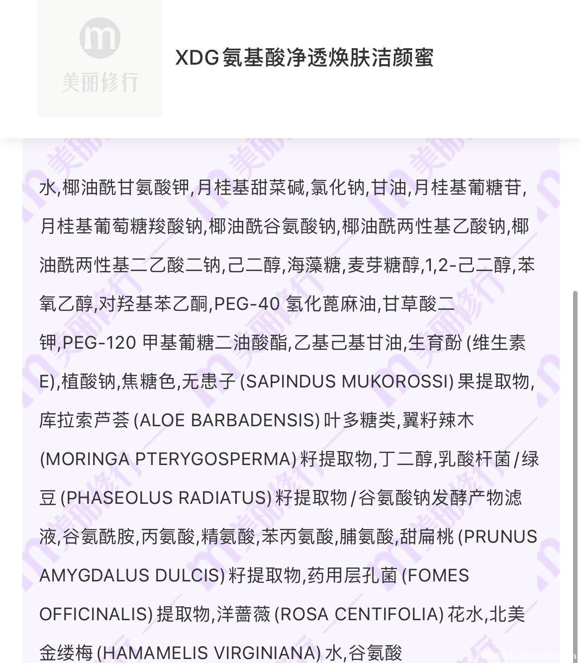 XDG洗面奶打開之后味道聞著不錯(cuò),香味比較,不刺鼻,還是蠻溫和安全的,沒有添加什么香精酒精這類刺激性的成分。我也在網(wǎng)上查了一下它的成分,還蠻溫和安全的,基本上一路飄綠,沒有致痘成分。