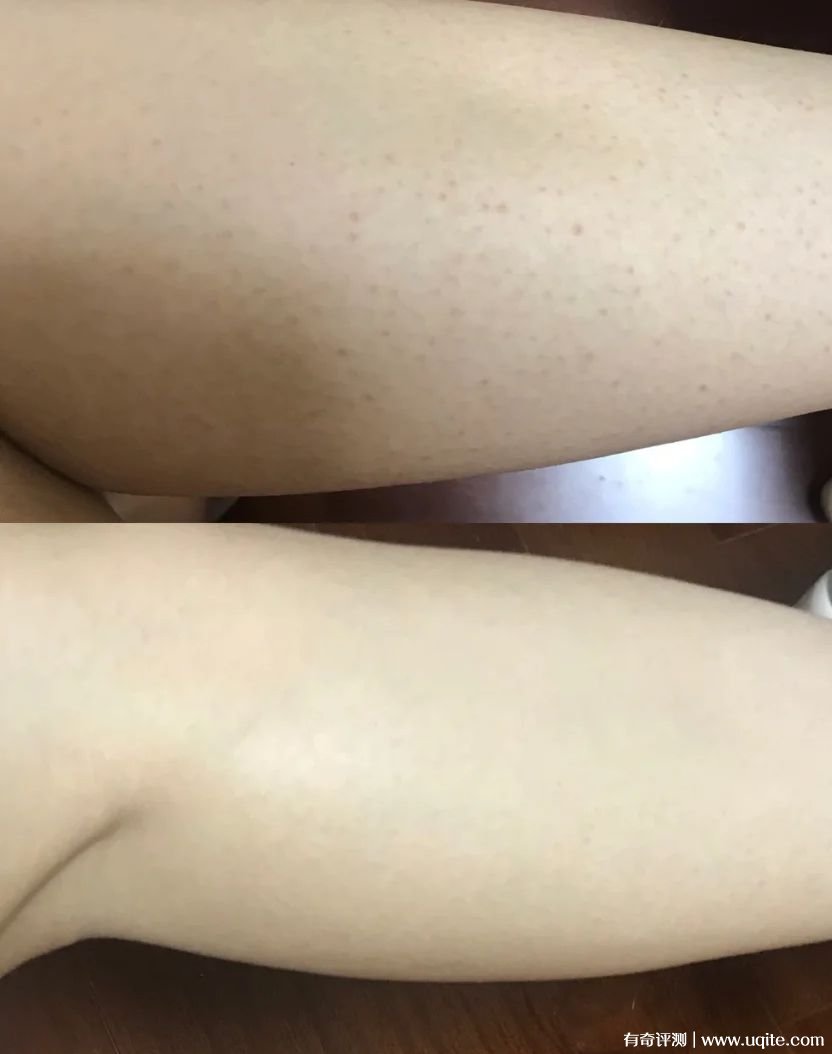 至于去雞皮膚方面,也是有效果的,目前用了一個(gè)多月快兩個(gè)月了,之前腿上和胳膊上還有的點(diǎn)雞皮疙瘩基本沒(méi)了,看著挺干凈的,就零星幾個(gè),皮膚光滑細(xì)膩。
