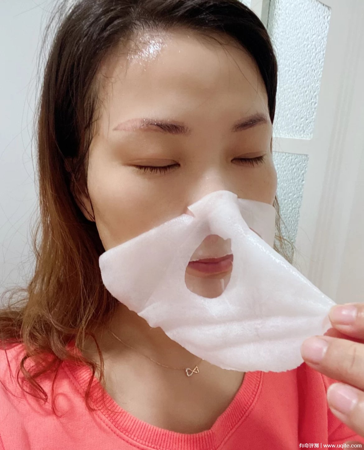 abib面膜打開之后味道聞著不錯(cuò),是那種淡淡的柚子清香,用著很舒服,沒有過敏。它的膜布厚度適中,材質(zhì)很好的感覺,上臉服帖沒氣泡,透氣性不錯(cuò)。里面精華含量也挺多的,還有多余的可以抹在脖子和腿上。