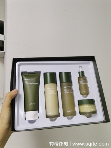 這套RONAR ISMAY護膚品是由五樣產(chǎn)品組合而成的,分別是潔面乳、精華水、精華乳、精華液和面霜。產(chǎn)品的包裝顏值也很高,感覺用來送人也是完全OK的。