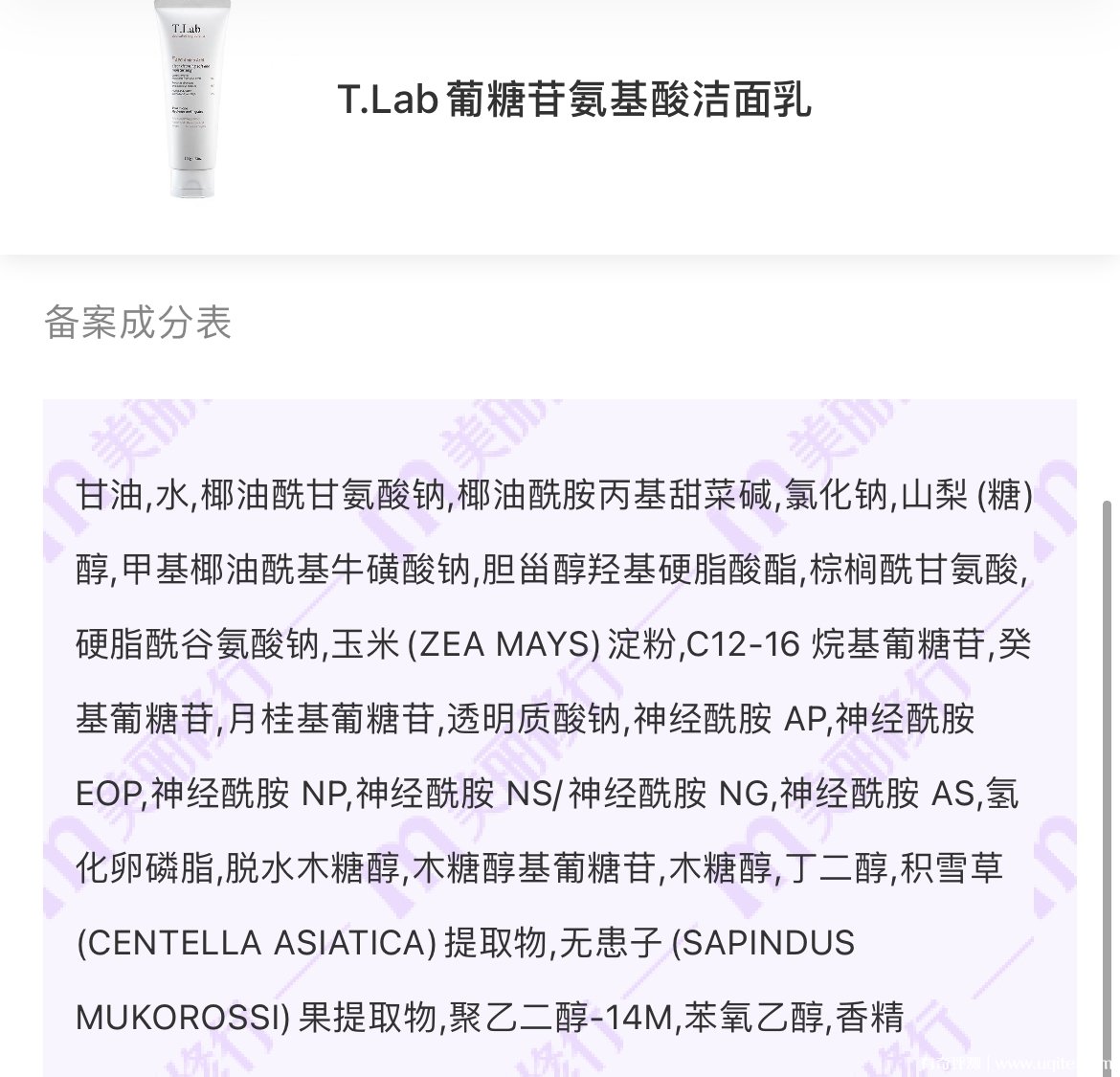tlab洗面奶打開之后味道聞著不錯,香味比較,不刺鼻,還是蠻溫和安全的,沒有添加什么香精酒精這類刺激性的成分。我也在網(wǎng)上查了一下它的成分,還蠻溫和安全的,基本上一路飄綠,沒有致痘成分。