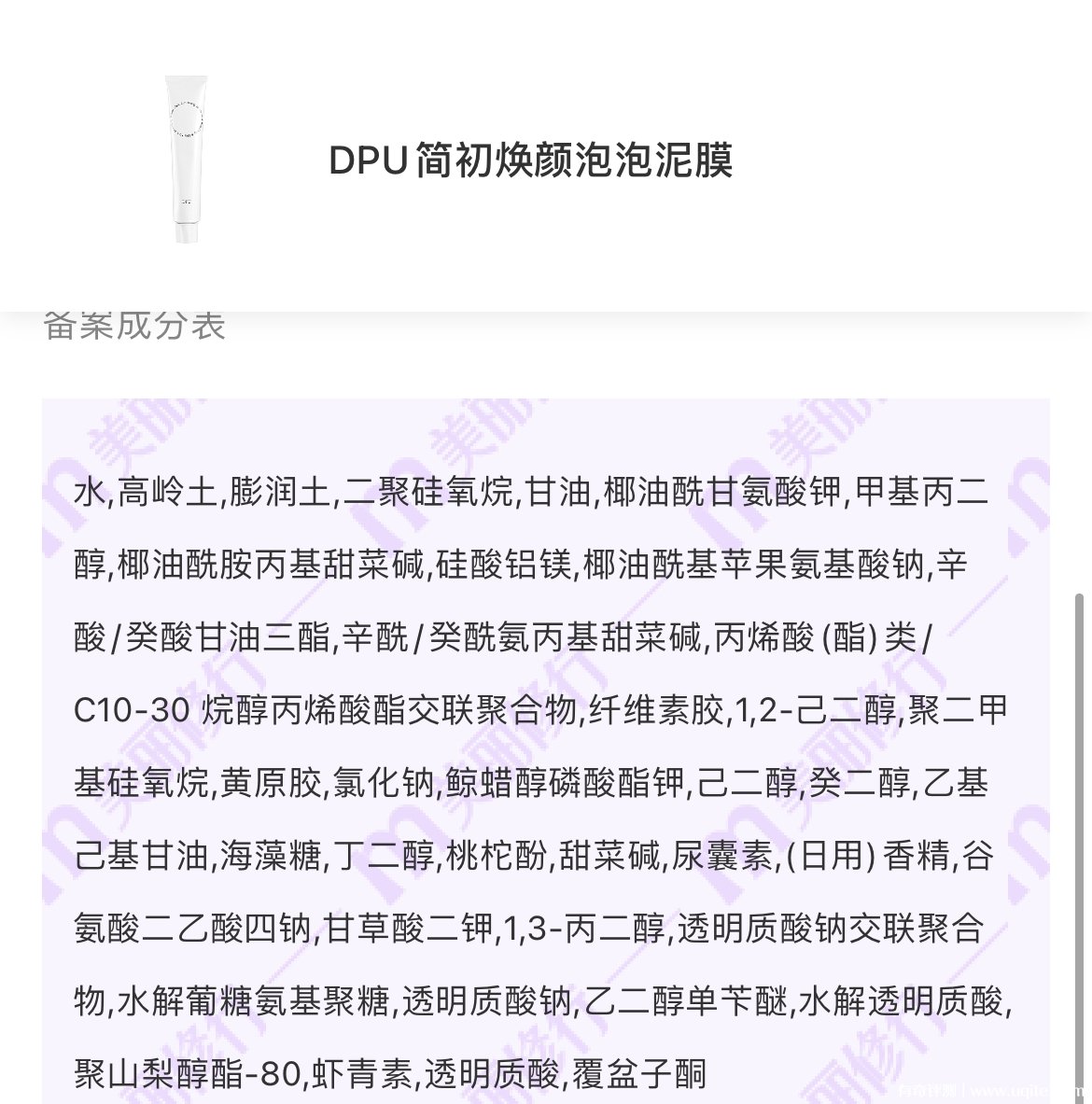 DPU泥膜的包裝還蠻不錯(cuò)的,打開之后味道挺淡的,聞著不刺激,用著也很溫和,而且我也在網(wǎng)上查了一下它的成分,還蠻安全的,沒有添加什么刺激性的成分。
