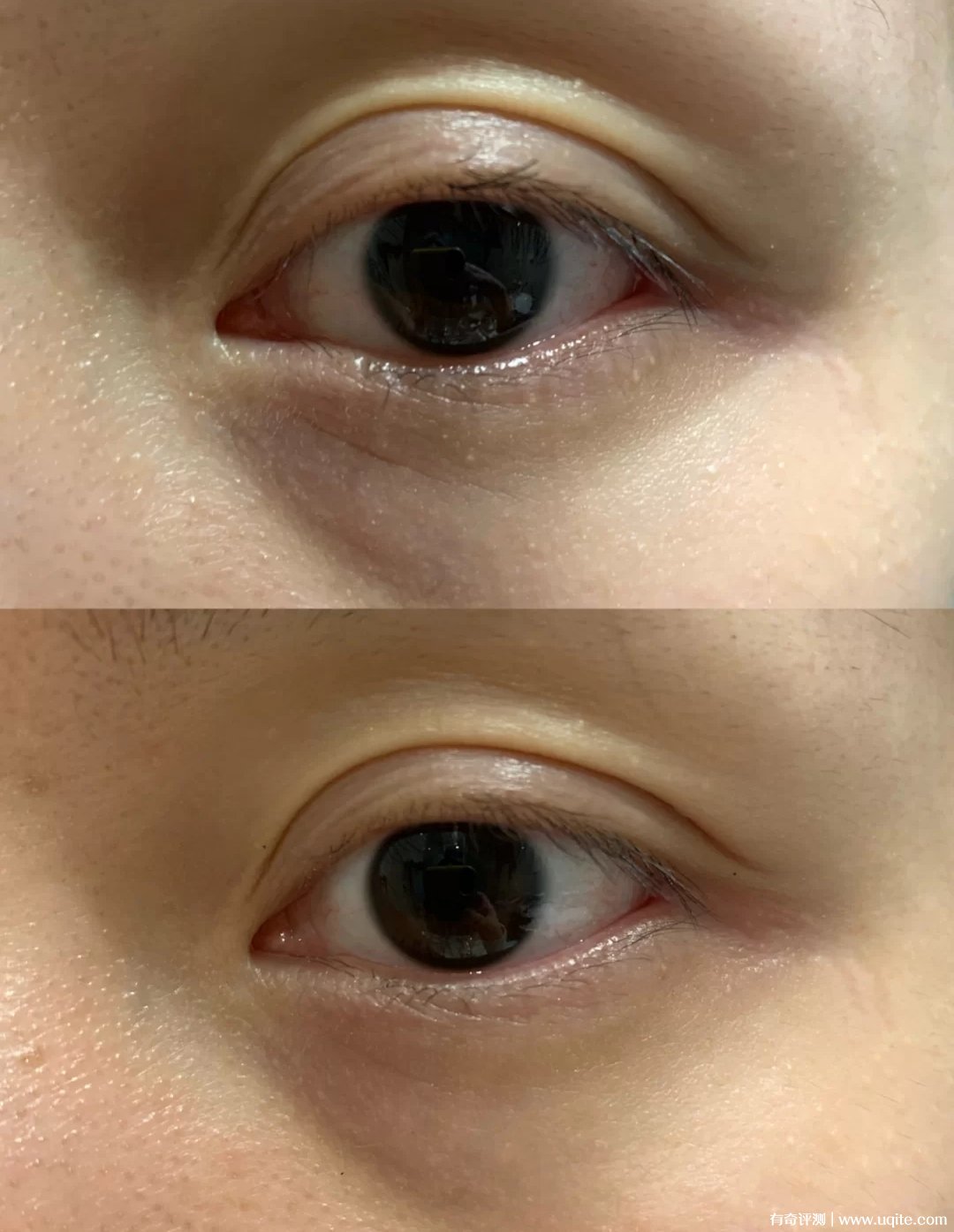 玻拉貝拉眼膠囊用著很方便,顆粒一擰就開了,質(zhì)地是類似啫喱的感覺,潤潤的,有點稠但不粘膩,量也挺多的,眼周一圈都涂上還有多的,我一般就抹法令紋那里了。因為怕防曬做得不好,所以是晚上用的,還有時間稍微按摩按摩。