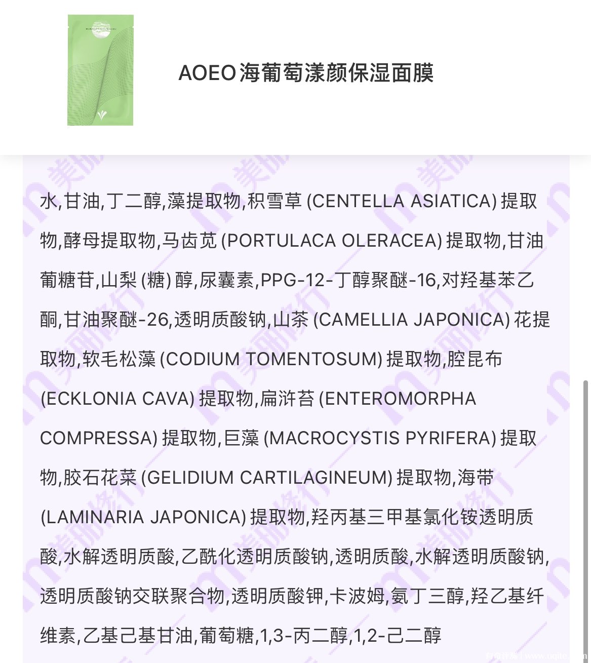 aoeo海葡萄面膜到手之后分量還蠻足的,它打開之后的味道挺淡的,聞著不刺激,用著很溫和,我也在網(wǎng)上查了一下它的成分,還蠻溫和安全的,沒有添加什么刺激性的成分,敏感肌用也ok。