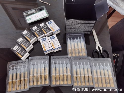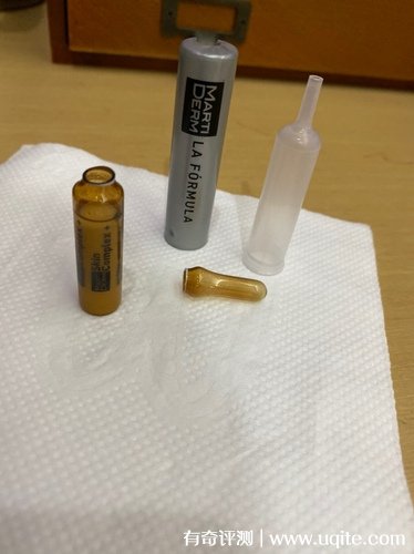 這款MartiDerm安瓶精華一盒里面有30支產(chǎn)品,而且每五支為一板裝,抱著嚴實性和密封性就挺高的,到手后沒有破損情況,就挺不錯的。在使用這款MartiDerm安瓶精華時,開口一定要小心,然后倒取時也要套上長嘴膠管,這樣能避免被劃傷的情況。