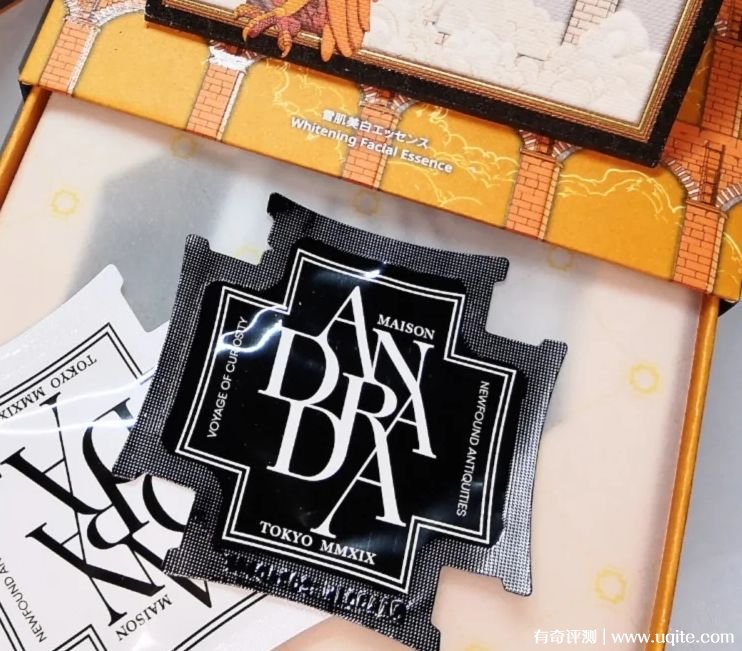 ANDRADA美白精華的包裝特別精致,很有藝術(shù)感。里面有黑白兩種小包裝,一袋里面的量不少,可以涂全臉再帶下脖子。味道很好聞,清香型,質(zhì)地水潤,流動性強,上臉吸收不錯,抹勻輕拍一會就好了,后續(xù)不粘膩不搓泥,不影響其他產(chǎn)品的吸收和使用。
