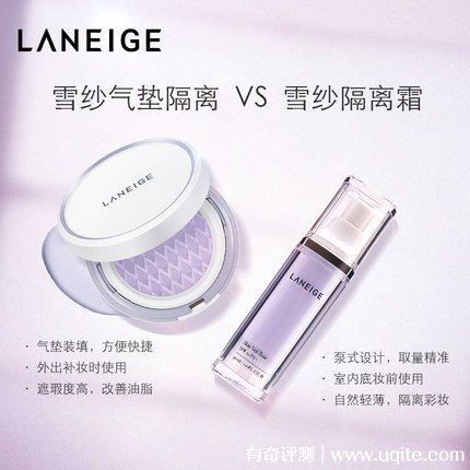 相比較蘭芝的瓶裝隔離霜,蘭芝的這款氣墊隔離更加輕薄了,質(zhì)地非常的水潤,上臉之后非常的透氣,然后控油能力非常好,比較適合夏天使用。氣墊隔離同樣分為紫色和綠色,效果跟瓶裝的是一樣的。如果你的女朋友正在糾結(jié)夏天使用什么隔離好,把這款氣墊隔離送給她非常合適,而且氣墊款的隔離使用更加方便。
