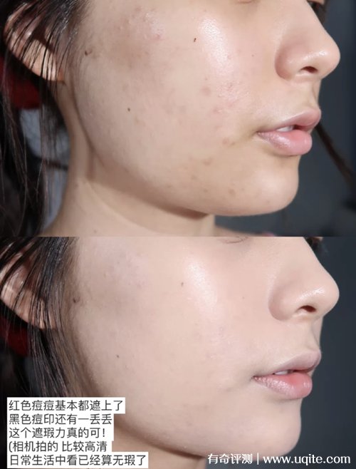 烙色粉底液的遮瑕效果不錯(cuò),我本身臉上黑眼圈比較重,也有一些泛紅的痘印,但它上一層的話基本上可以把我臉上的泛紅遮住,痘印也可以遮蓋個(gè)七七八八,因?yàn)檩p薄,所以繼續(xù)疊加也不厚重,黑眼圈涂個(gè)兩層就差不多了,不是嚴(yán)重瑕疵皮的話后續(xù)基本上不需要再用遮瑕產(chǎn)品。