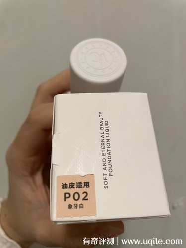 烙色粉底液有兩個(gè)版本,適合干皮和油皮的,我本身是一個(gè)油皮,就選擇了適合油皮的那一款。它的色號(hào)不算很多,有兩種色號(hào),我買的是p02象牙白,適合偏白的膚色,但顏色不會(huì)假白,整體很自然。