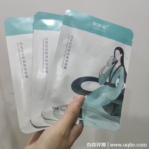 這款泉多姿植物面膜的包裝設(shè)計風(fēng)格挺有國風(fēng)韻味的,而且在使用時,面膜的膜布非常的輕薄,上臉敷貼完全就像隱形了一樣,透氣性和親膚性都很高。