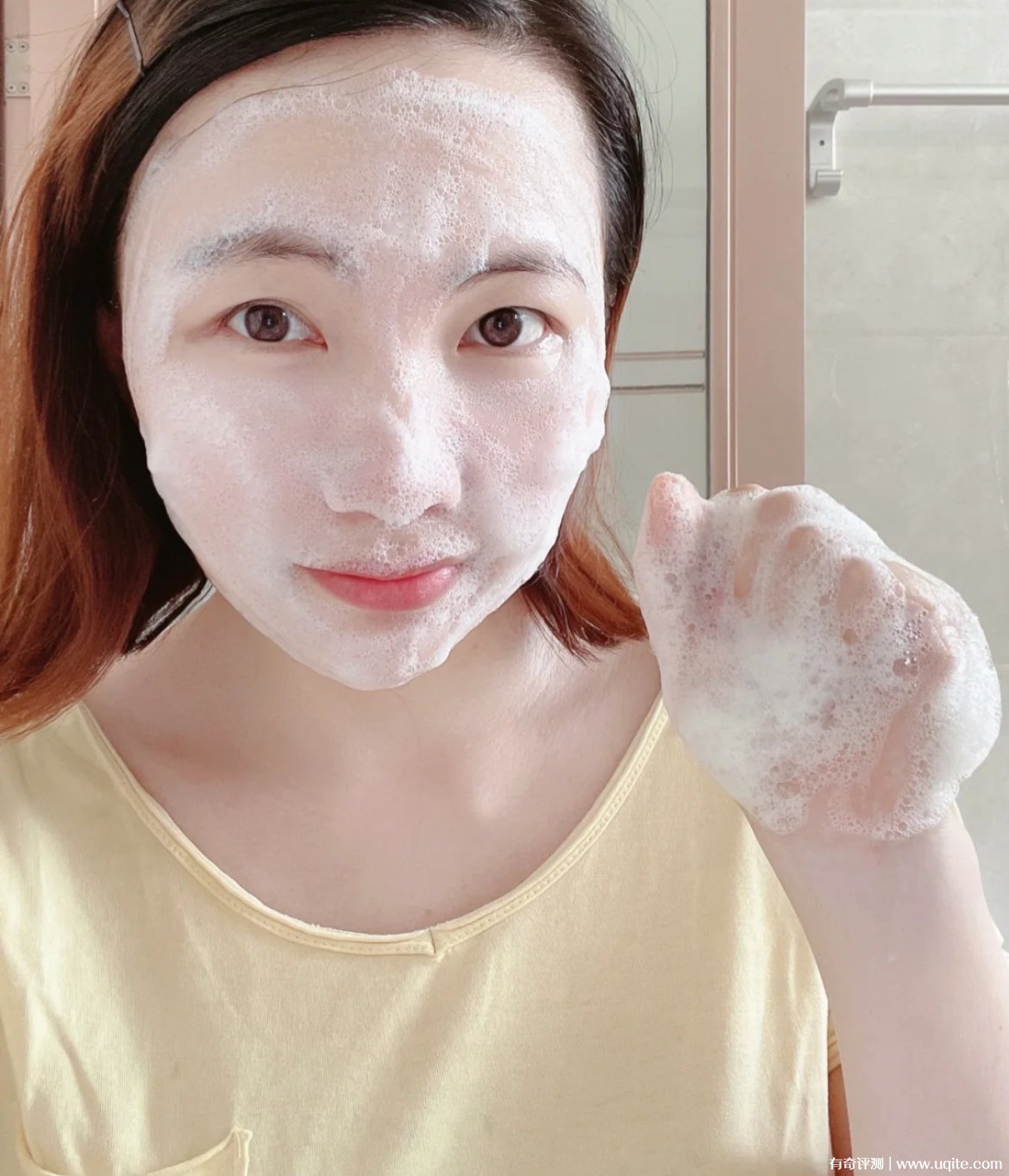 自然堂洗面奶的起泡性還不錯,用手打就不少了,用起泡網更豐富綿密,泡沫上臉不刺激,舒舒服服的,沖洗也方便,洗完不拔干不假滑。