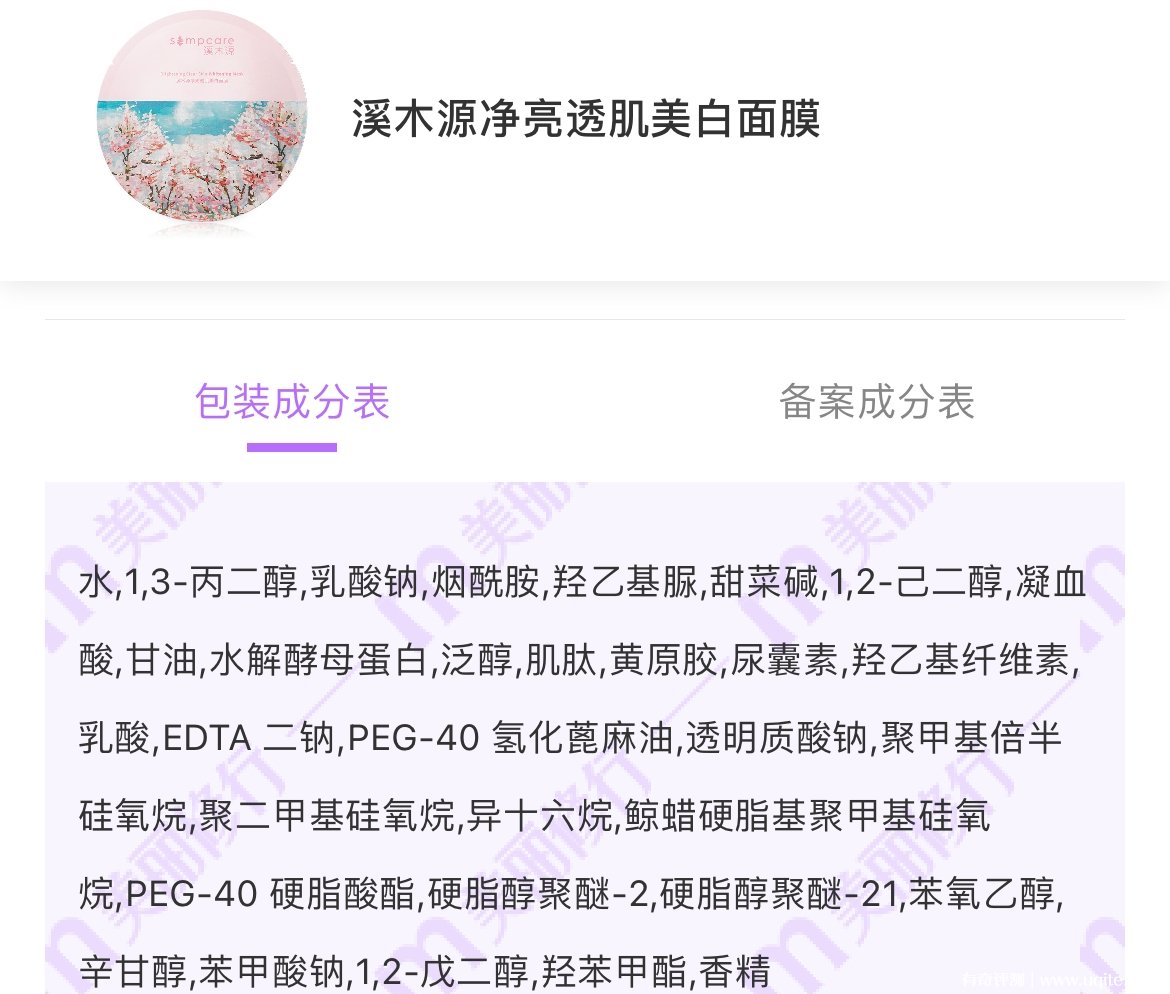 溪木源櫻花面膜味道聞著還蠻不錯(cuò)的,香味比較淡,是淡淡的櫻花清香,不刺鼻,我也在網(wǎng)上查了一下它的成分,它是沒有添加什么香精和酒精的,所以就算是敏感肌用也沒啥問題。